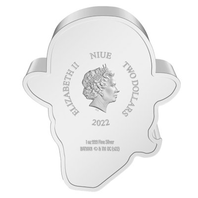 Die Silbermünze zeigt den Riddler mit Fragezeichen am Hut und einer Maske um die Augen. Unter der grünen Kopfbedeckung quellen rote Haare hervor. Das Sammlerstück ist 36,00 mal 31,41 Millmeter groß und enthält 1 oz Feinsilber bei einem Feingehalt von 999/1000. Die Wertseite zeigt das Porträt der Königin Elizabeth II. von Ian Rank-Broadley. Daneben findet man den Nennwert von 2 Dollars. Als Ausgabeland fungiert Niue. Die Silbermünze hat einen glatten Rand. Sie wird gekapselt und verpackt in ein Etui mit Sichtfenster ausgegeben. Ein nummeriertes Echtheitszertifikat gibt es dazu.