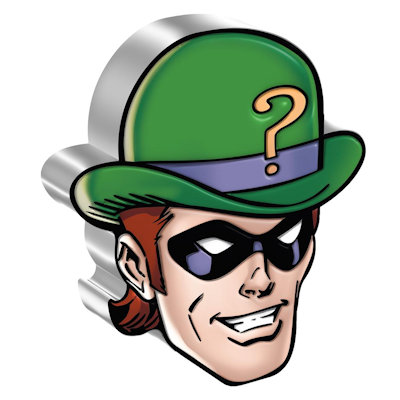 Rätselhaft ist die Identität dieses Schurkens sicher nicht: Die neueste Ausgabe der Silbermünzen-Serie Faces of Gotham der New Zealand Mint zeigt klar erkennbar den Riddler, einen weiteren beliebten Batman-Gegenspieler. Die leuchtend kolorierte Formprägung ist ein Muss für Fans der DC Comics oder der Batman-Serie aus den 1960ern. Sie hat eine limitierte Auflage von 5.000 Exemplaren.
