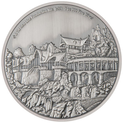 Den Schauplätzen der Lord-of-the-Rings-Filme hat die New Zealand Mint eine eigene Münzserie gewidmet. Nach dem beschaulichen Auenland zum Auftakt geht die Reise nun weiter in die märchenhafte Elebenwelt von Bruchtal. Besonders gut kommt diese auf der Version aus drei Unzen Feinsilber zur Geltung, die einen Durchmesser von 55 Millimetern aufweist. Die Auflage ist streng limitiert auf nur 1.000 Exemplare.