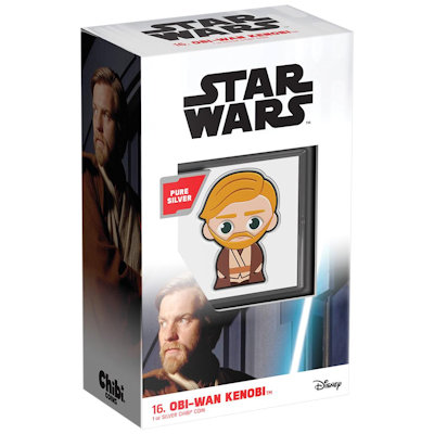 Obi-Wan Kenobi im Mini-Format ist 36 mal 27,03 Millimeter groß. Er enthält 1 oz Feinsilber bei einem Feingehalt von 999/1000. Die Wertseite der Chibi-Silbermünze zeigt das Porträt der Königin Elizabeth II. von Ian Rank-Broadley über dem Nennwert von 2 Dollars. Als Ausgabeland fungiert Niue. Der Münzrand ist glatt. Das Sammlerstück wird gekapselt und verpackt in einen Karton mit Sichtfenster ausgegeben, auf den die individuelle Seriennummer aufgedruckt ist.