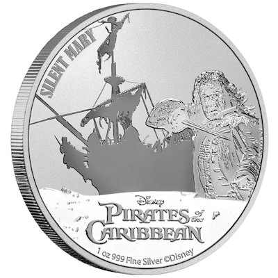 Den stolzen Schiffen der Kino-Reihe widmete die New Zealand Mint die Silbermünzen-Serie Pirates of the Caribbean. Mit der Silent Mary, dem Schiff des geisterhaften Kapitäns Armando Salazar aus dem fünften Fluch-der-Karibik-Film „Salazars Rache“, ist jetzt die letzte Ausgabe erschienen. Die silberne Anlagemünze hat eine Auflage von 15.000 Stück.