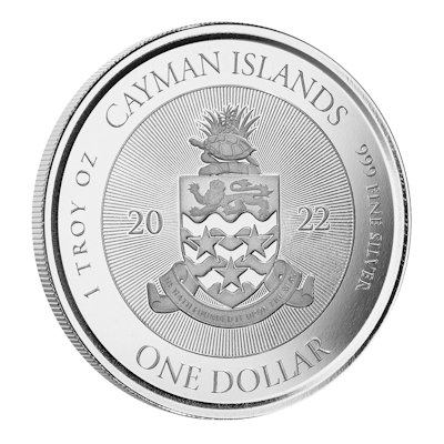 Die Wertseite der Silbermünze zeigt das Wappen der Cayman-Inseln: Auf dem Wappenschild mit drei Sternen und einem Löwen thront eine Schildkröte, die eine Ananas trägt. Das Spruchband darunter trägt das Motto „He Hath Founded it Upon the Sea“, das ein Zitat aus dem Alten Testament darstellt. Das Sammlerstück enthält 1 oz Feinsilber bei einem Feingehalt von 999/1000. Der Nennwert ist mit einem Dollar angegeben. Der Münzrand ist geriffelt. Die Silbermünzen zum Platin-Thronjubiläum von Königin Elizabeth II. werden einzeln gekapselt ausgegeben.