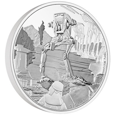 Das Motiv der Silbermünze ist von einer Szene aus der Schlacht auf Hoth inspirert. Es ist detailreich geprägt und zeigt neben dem AT-ST-Kampfläufer im Hintergrund auch einige AT-ATs. Das Sammlerstück in Proof-Prägung hat einen Durchmesser von 40 Millimetern und enthält 1 oz Feinsilber (Feingehalt 999/1000). Es handelt sich um ein lizenziertes Produkt der Lucasfilm Ltd. Die Wertseite zeigt das Porträt von Königin Elizabeth II. und den Nennwert von zwei Dollars. Als Ausgabeland fungiert Niue. Die Silbermünze wird verpackt in ein schwarzes Etui mit dem Star-Wars-Logo und mit einem nummerierten Echtheitszertifikat ausgegeben.