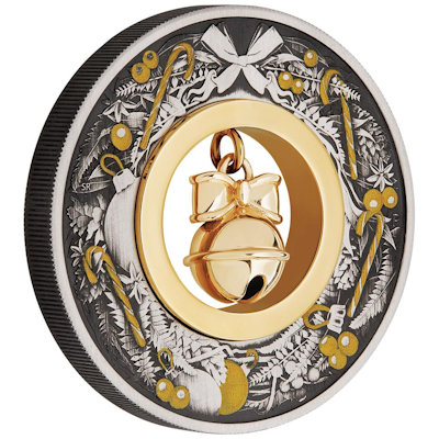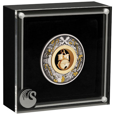 jingle-bells-1-oz-silber-antik-finishSind es die Glöckchen an einem Pferdeschlitten, der in rascher Fahrt über den Schnee gleitet? Oder ist es doch der Rentierschlitten des Weihnachtsmanns, der gerade auf dem Dach gelandet ist? Jedenfalls erinnert das Bimmeln sofort an Winter, Weihnachten und die Kindheit. Deshalb ist der Perth Mint mit der vergoldeten Silbermünze Jingle Bell ein nostalgisches Sammlerstück gelungen, das sicher schnell Liebhaber finden wird. Dabei hat es eine Auflage von nur 2.500 Stück.