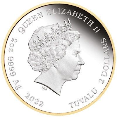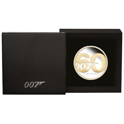 Das Sammlerstück zum Jubiläum 60 Jahre Bond hat einen Durchmesser von 50,80 Millimetern und einen Feingehalt von 999/1000. Es ist in der höchsten Qualität Polierte Platte geprägt und enthält 2 oz Feinsilber. Die Wertseite zeigt das Porträt von Königin Elizabeth II. Randläufig sind der Nennwert von 2 Dollars und das Ausgabeland Tuvalu verzeichnet. Die Silbermünze wird gekapselt und in einem schwarzen Etui ausgegeben. Die Umverpackung ist passend zum Jubiläum gestaltet. Die Auflage ist auf 2.000 Exemplare limitiert, die mit nummeriertem Echtheitszertifikat ausgegeben werden.