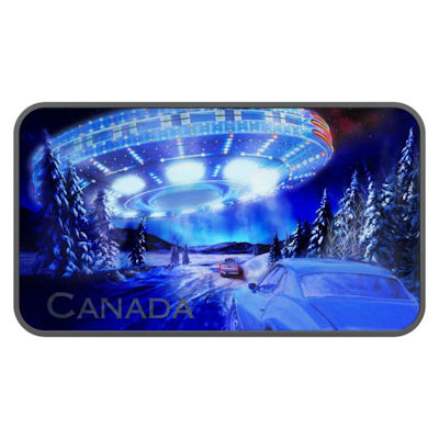 Die kolorierte Silbermünze gibt die faszinierende Szene der Lichter über dem verschneiten Highway wieder. Richtet man die Schwarzlichtlampe, mit der das Sammlerstück ausgeliefert wird, auf das Motiv, erscheint das UFO vollständig. Die riesige fliegende Untertasse nimmt fast die ganze Breite des querformatigen Motivs ein. Die Silbermünze ist 49,8 mal 28,6 Millimeter groß und enthält 1 oz Feinsilber bei einem Feingehalt von 99,99 Prozent. Der Rand ist glatt. Umseitig findet man das Porträt von Königin Elizabeth II., wobei der Hintergrund an ein schwarzes Loch erinnert. Der Nennwert ist mit 20 CAD angegeben. Die Silbermünze wird im Etui und mit nummeriertem Echtheistzertifikat ausgegeben. Die Auflage ist auf 7.500 Stück limitiert.