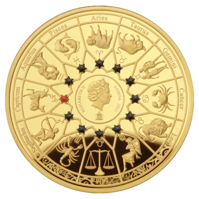 Das Etui der Kupfermünze bettet Hestia in den Tierkreis ein. Ganz oben ist dabei das Sternzeichen Steinbock zu sehen. Dieses findet sich auch umseitig wieder. Hier bilden die Sternzeichen einen Ring um das Porträt von Königin Elizabeth II., die das offizielle Staatsoberhaupt des Ausgabelands Samoa war. Über jedem Zeichen ist ein schwarzer Stern platziert, nur beim Steinbock ist er farbig, um das Zeichen hervorzuheben. Die Kupfermünze hat einen Durchmesser von 40 Millimetern, einen Feingehalt von 999/1000 und ein Gewicht von 25 Gramm.