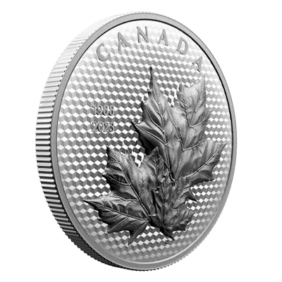 Seit 35 Jahren gibt die Royal Canadian Mint eine der weltweit gefragtesten Bullionmünzen heraus – die silberne Maple Leaf. Dieses Jubiläum ist der Prägeanstalt eine Sonderausgabe wert, die das Blatt des Zuckerahorns auf eindrucksvolle Art zum Leben erweckt. Neben dem extra hohen Relief, das jede Blattader deutlich herausarbeitet, sorgt das Muster im Hintergrund für Dynamik: Je nach Lichteinfall spiegelt und glänzt es an unterschiedlichen Stellen – wie das Licht im Wald, wenn es durch die Baumkronen fällt und die Blätter sich im Wind bewegen. Das Faible der Prägeanstalt für Ahornblätter hängt natürlich damit zusammen, dass das Maple Leaf Kanadas Nationalsymbol ist und die Landesflagge ziert. Das Vorbild dafür war das Blatt des Zuckerahorns. Dieser ist eine von zehn Ahornarten, die in Kanada wachsen.