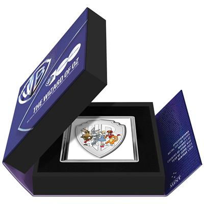 Die Silbermünze zeigt die Stars der Looney Tunes als Figuren aus dem Klassiker „Der Zauberer von Oz“: Bugs Bunny ist der Zinnmann, der Kojote tritt als Vogelscheuche auf, Lola Bunny ist natürlich als Dorothy unterwegs und Sylvester präsentiert sich als Löwe. Das Sammlerstück ist 55 mal 45 Millimeter groß und enthält 2 oz Feinsilber bei einem Feingehalt von 999/1000. Umseitig ist das offizielle Siegel des Ausgabelands Niue aufgeprägt. Oberhalb findet man den Nennwert von fünf Dollars. Unten weist der Copyright-Hinweis das Sammlerstück als lizenziertes WB-Produkt aus. Die in der höchsten Prägequalität Polierte Platte gefertigten Silbermünzen werden gekapselt und in einem Etui mit dem Warner-Bros-Logo ausgegeben. Ein nummeriertes Echtheitszertifikat gehört dazu.