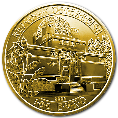 wiener-secession-16-g-goldWien gilt als eine der europäischen Hauptstädte des Jugendstils. Von 2004 bis 2007 widmete die Münze Österreich dieser Epoche eine 100 Euro-Goldmünzenserie. Die Auftaktausgabe zeigt das bekannte Ausstellungshaus der Künstlervereinigung „Wiener Secession“ sowie ein Detail aus dem berühmten Beethovenfries von Gustav Klimt. Sie wurde in einer Auflage von 30.000 Stück ausgegeben.