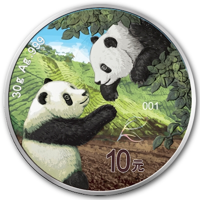 Im Unterschied zu den meisten Bullionmünzen enthalten die China Pandas nicht eine Unze, sondern genau 30 Gramm Feinsilber. Der Nennwert von 10 Yuan ist rechts aufgeprägt, die Sonderausgaben gelten jedoch nicht als gesetzliches Zahlungsmittel. Umseitig zeigt die Silbermünze einen Teil des Himmelstempels in Peking. Auch diese Seite ist koloriert, außerdem sind rund um das Gebäude die Symbole der vier Elemente zu finden. Die in Stempelglanz-Qualität geprägte Silbermünze hat einen Durchmesser von 40 Millimetern und einen Feingehalt von 999/1000. Der Münzrand ist geriffelt.