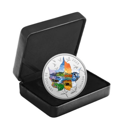 Das Ahornblatt markiert mit seinen unterschiedlichen Farben den Wechsel der Jahreszeiten in Kanada. Auch die Tierwelt verändert sich je nach Saison. Diesen Kreislauf der Natur fängt eine neue Silbermünze der Royal Canadian Mint mit höchster Prägekunst und Kolorierung ein. Das Sammlerstück mit dem Titel Canadian Collage hat eine limitierte Auflage von nur 2.500 Stück.