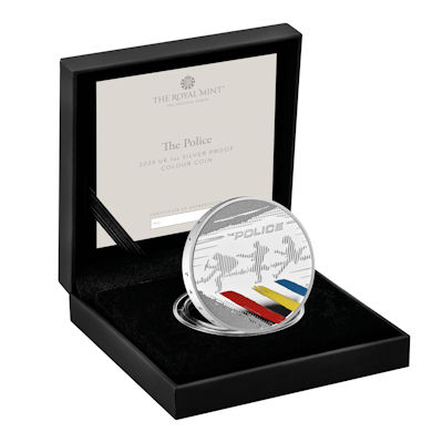 Fünf Alben in fünf Jahren – das genügte, um The Police zur Musiklegende zu machen. Nach Queen, Elton John, David Bowie, The Who, The Rolling Stones und Shirley Bassey sind die drei Musiker die nächsten, die von der Royal Mint mit Sammelmünzen geehrt werden. Die Gestaltung ist angelehnt an das letzte Album, Synchronicity, was besonders auf der kolorierten Silbermünze gut zu sehen ist. Die Auflage ist auf 6.000 Exemplare limitiert.