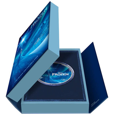 Auf dem Motiv der Silbermünze steht Elsa im Mittelpunkt. Mit dem blauen Kleid und dem langen blonden Zopf ist sie auch von hinten sofort erkennbar. Mit ausgestreckter Hand lässt sie einen riesigen, zauberhaften Eiskristall am nächtlichen Himmel erscheinen. Dessen Herzstück bildet der blau funkelnde Schmuckstein. Im Hintergrund leuchten die warmen Lichter des Schlosses. Das Logo des Films und das Disney-Logo in Silber ergänzen das Bild. Es handelt sich um ein lizenziertes Disney-Produkt. Das in höchster Proof-Qualität geprägte Sammlerstück hat einen Durchmesser von 40 Millimetern und enthält 1 oz Feinsilber (Feingehalt 999/1000). Der Münzrand ist geriffelt. Die Wertseite zeigt das offizielle Siegel des Ausgabelandes Niue. Der Nennwert ist mit zwei Dollars angegeben. Die Silbermünze ist in ein passendes Etui verpackt und wird mit Echtheitszertifikat geliefert.