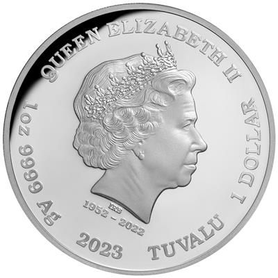 Das in der höchsten Prägequalität Polierte Platte gefertigte Sammlerstück enthält 1 oz Feinsilber bei einem Feingehalt von 99,99 Prozent. Der Durchmesser liegt bei 40,90 Millimetern. Die Wertseite zeigt das Portät von Queen Elizabeth II., unter dem die Regierungsdaten der Königin angegeben sind. Als Ausgabeland fungiert Tuvalu. Der Münzrand ist geriffelt. Die Silbermünzen werden gekapselt, im Etui und in einer Umverpackung ausgegeben. Ein nummeriertes Echtheitszeritifikat gehört dazu.