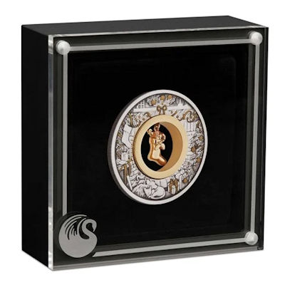 Jetzt kann Weihnachten kommen! Die Perth Mint hat sich von dem bekannten Gedicht „A Visit from St. Nicholas“ – besser bekannt als „The Night Before Christmas“ – zu einem zauberhaften Sammlerstück inspirieren lassen. Ein silberner Ring mit Antik-Finish umgibt den frei hängenden vergoldeten Strumpf in der Mitte. Goldene Farbakzente und die niedrige Auflage von nur 3.000 Exemplaren runden die Geschenkidee ab.