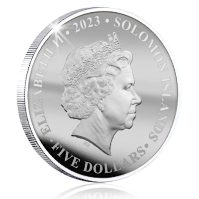 100-jahre-disney-schneewittchen-1-oz-silber-koloriert-wertseiteDie Silbermünze zeigt noch ein weiteres Erfolgsmerkmal der Filme: die Musik. Schnewittchen sitzt singend am Brunnen, ein Vögelchen auf der Hand. Die Prinzessin und das Tier heben sich durch Farbapplikationen vom silbernen Hintergrund ab. Die Prägung in höchster Proof-Qualität bringt das Motiv schön zur Geltung. Das Jubiläums-Logo und das Logo des Films ergänzen das Bild. Die Silbermünze enthält 1 oz Feinsilber bei einem Feingehalt von 999/1000. Der Münzrand ist geriffelt. Der Durchmesser liegt bei 38,61 Millimetern. Die Wertseite zeigt das Porträt von Königin Elizabeth II. Ausgabeland sind die Solomon Islands. Der Nennwert ist mit fünf Dollars angegeben. Das Disney-Sammlerstück wird gekapselt, im Etui und mit Echtheitszertifikat ausgegeben.