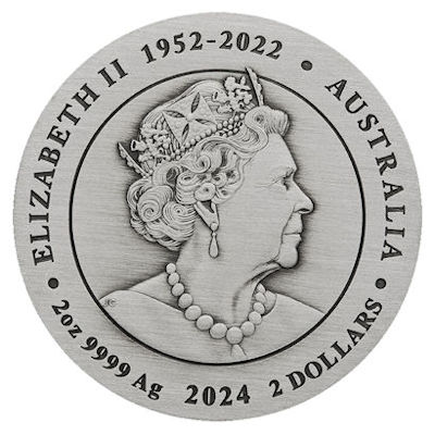 Ganz am Rand weist die Zahl 125 neben dem P der Perth Mint auf den Geburtstag der Prägeanstalt hin. Die Silbermünze aus 2 oz Feinsilber hat einen Feingehalt von 99,99 Prozent und einen Durchmesser liegt bei 40,69 Millimetern. Der Münzrand ist glatt. Die Wertseite zeigt nach wie vor das Jody-Clark-Porträt der Königin Elizabeth II., deren Regierungsdaten oben genannt sind. Der Nennwert ist mit zwei australischen Dollars angegeben. Ausgegeben werden die Lunar-Münzen in einem Etui mit durchsichtigem Deckel, sodass die sich gut geschützt präsentieren lassen. Die Umverpackung regt zum Sammeln an: Zusammen mit den weiteren Ausgaben der Serie zeigt sie die Legende vom Großen Wettrennen der Lunar-Tiere.