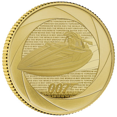 Erst ging es mit dem Gyrokopter „Little Nellie“ in die Luft, dann mit dem Auto-U-Boot „Wet Nellie“ ins Wasser, anschließend hob die Goldmünzen-Serie Six Decades of 007 mit dem Acrostar Bede Jet wieder ab. Folgerichtig ist für die vierte Ausgabe erneut ein Wasserfahrzeug an der Reihe. Die Goldmünze zeigt das Rennboot aus dem Film Die Welt ist nicht genug von 1999. Die Auflage der Viertelunze ist auf 650 Exemplare limitiert.