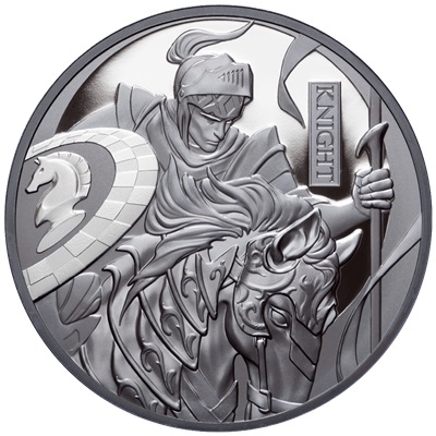 Das Motiv der Silbermünze zeigt den Springer als Ritter hoch zu Ross, passend zum englischen Namen der Figur „Knight“. Sie hat einen Durchmesser von 38,60 Millimetern und enthält 1 oz Feinsilber bei einem Feingehalt von 999/1000. Die Wertseite zeigt das Porträt von König Charles III. Als Ausgabeland fungiert Niue. Der Nennwert ist mit einem Dollar angegeben. Das Sammlerstück in der höchsten Prägequalität Polierte Platte wird gekapselt und in einem passenden Etui mit Umverpackung ausgegeben. Ein Echtheitszertifikat gehört dazu.