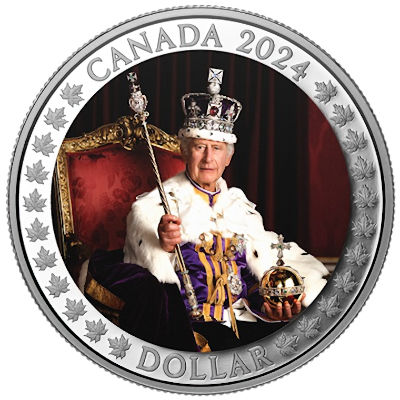 Das kolorierte Motiv zeigt Charles in vollem Krönungsornat mit pelzverbrämtem Mantel und Krone auf dem Kopf. Das Zepter und der Reichsapfel wurden für seinen Vorgänger Charles II. im 17. Jahrhundert gefertigt. Als Vorlage für das Motiv diente das offizielle Krönungsfoto von Hugo Burnand. Auf dem silbernen Rahmen um dieses Motiv reihen sich Ahornblätter. Unten ist der Nennwert von einem Dollar verzeichnet. Diese Wertseite steht in interessantem Gegensatz zu dem umseitigen Königsporträt, das eher nüchtern gehalten ist. Es zeigt Charles im Anzug mit Krawatte, aber ohne Krone und sonstige Symbole seiner königlichen Macht. Die Silbermünze hat einen Durchmesser von 36,07 Millimetern und einen geriffelten Rand. Sie enthält 23,17 Gramm Feinsilber bei einem Feingehalt von 999,9/1000 und ist in der höchsten Prägequalität Polierte Platte gefertigt. Ausgegeben wird sie gekapselt, im Etui und mit einer passenden Umverpackung. Ein Echtheitszertifikat gibt es außerdem noch dazu.