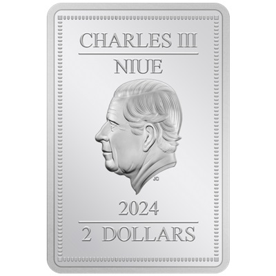 Die in der höchsten Prägequalität Polierte Platte hergestellte Silbermünze zeigt Harry Potter mit der typischen runden Brille und den unordentlichen schwarzen Haaren. Der silberne Patronus-Hirsch steht schützend vor ihm. Die Metallic-Farben verleihen dem Bild zusammen mit dem ornamentalen Rahmen genau die passende Prise Magie. Auf der Wertseite findet man das Porträt von König Charles III. von Jody Clark. Das Ausgabeland ist Niue. Der Nennwert beträgt 2 Dollars. Der Silberbarren aus 1 oz Feinsilber ist 53 mal 36 Millimeter groß und hat einen Feingehalt von 999/1000. Ausgegeben wird er gekapselt und im Original-Etui mit Sichtfenster. Ein Echtheitszertifikat ist enthalten.