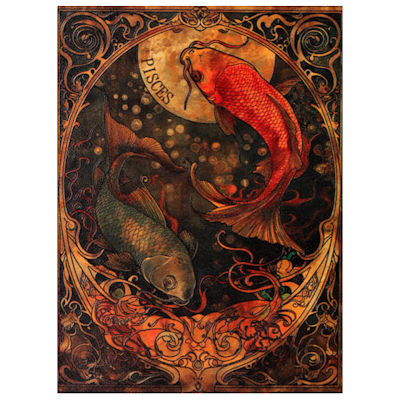 Vom 20. Februar bis zum 20. März regieren die Fische. Ihr Planet ist der Neptun. Sie gelten als besonders einfühlsam, künstlerisch begabt und spirituell veranlagt, sollen aber auch zu visionären Ideen fähig sein. Berühmte „Fische“ sind etwa Albert Einstein, Liz Taylor oder Steve Jobs. Das Motiv der Silbermünze zeigt die Fische so, wie sie als Sternbild interpretiert werden: Sie schwimmen in entgegengesetzte Richtungen und bilden dabei einen Kreis. Mit ihren schimmernden Schuppen könnten sie gut Koi-Karpfen sein.
