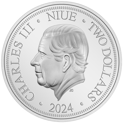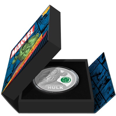 Diese zeigt auch das Motiv der Silbermünze. Daneben präsentiert Hulk seine Statur, auf die jeder Bodybuilder neidisch wäre. Das von Marvel lizenzierte Sammlerstück enthält 1 oz Feinsilber (Feingehalt: 99,99 Prozent) und hat einen Durchmesser von 40,00 Millimetern. Der Münzrand ist geriffelt. Die Wertseite zeigt das Porträt von König Charles III. und den Nennwert von zwei Dollars. Als Ausgabeland fungiert Niue. Die in Proof-Qualität geprägte Silbermünze wird in einem passenden Etui und inklusive Echtheitszertifikat ausgegeben.
