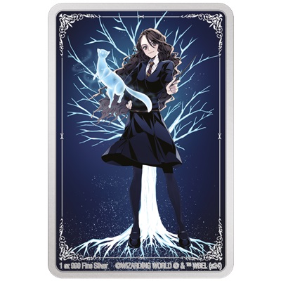 Es gibt nur einen Zauber, mit dem Hermine Granger Probleme hat – und das ist ausgerechnet der Patronus. Auf dieser Silbermünze hat sie es aber geschafft und präsentiert ihren magischen Beschützer – ebenso wie Harry Potter auf der ersten Ausgabe. Das kolorierte Sammlerstück zu der beliebten Reihe hat eine streng limitierte Auflage von nur 2.000 Stück.