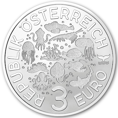 Im Schwarzlicht zeigt der Rochen seine andere Seite: Ein grünes Leuchten geht von seinem Körper aus. Dabei scheint der Fisch über den Bullaugen-Rahmen der Münze hinauszuschwimmen. Die Kupfer-Nickel-Münze hat einen Durchmesser von 34 Millimetern und ein Gewicht von 16,00 Gramm. Umseitig ist der Nennwert von 3 Euro angegeben. Die Wertseite zeigt eine scherenschnittartige Darstellung aller Tiere aus der Serie. Die Sammelmünzen sind in der Qualität Handgehoben hergestellt.