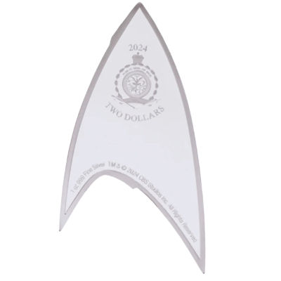 Die Silbermünze ist 29,19 mal 53,00 Millimeter groß und hat die Form des typischen Sternenflotten-Deltas. Sie enthält 1 oz Feinsilber bei einem Feingehalt von 999/1000. Die Wertseite zeigt das offizielle Siegel der Insel Niue, die als Ausgabeland fungiert. Der Nennwert ist mit zwei Dollars angegeben. Das in der höchsten Prägequalität Polierte Platte hergestellte Sammlerstück wird gekapselt und in einer passenden Umverpackung mit Sichtfenster ausgegeben. Ein Echtheitszertifikat gehört außerdem noch dazu.