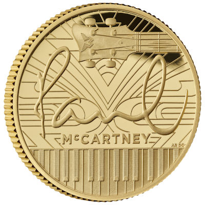 Eine Band fehlte bisher in der Serie Music Legends der britischen Royal Mint, die vielleicht berühmteste Gruppe der englischen Musikgeschichte: die Beatles. Mit der Ausgabe Paul McCartney wird diese Lücke nun in gewisser Weise geschlossen. Die Goldmünze für den Ausnahme-Musiker gibt es in verschiedenen Versionen. Aus einer Viertelunze Gold hat sie eine Auflage von nur 575 Stück.