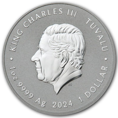 ottifanten-ruesselfanten-1-oz-silber-wertseiteDie Silbermünze zeigt zwei Ottifanten mit verschlungenen Rüsseln. Über ihnen schwebt eine Taube. Den Hintergrund bilden kleine Herzchen. Unten ist Ottos Signatur aufgeprägt, am Rand entlang das lateinische Motto sowie seine deutsche Übersetzung. Die in Stempelglanz-Qualität geprägten Silbermünzen enthalten 1 oz Feinsilber bei einem Feingehalt von 99,99 Prozent. Der Durchmesser liegt bei 40,90 Millimetern. Da das Ausgabeland Tuvalu ist, findet man umseitig das Porträt von König Charles III. Der Nennwert ist mit 1 Dollar angegeben. Die Silbermünzen sind einzeln gekapselt und haben einen geriffelten Rand.