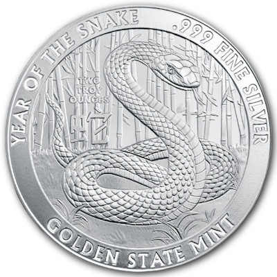 Seit gut vier Monaten befinden wir uns im Jahr der Schlange. Dieses sechste der zwölf chinesischen Tierkreiszeichen soll für Weisheit und Intelligenz stehen. Viele silberne und goldene Sammlerstücke und Anlagemünzen mit Schlangenmotiv sind in den vergangenen Monaten bereits erschienen. Wer noch einen Glücksbringer mit dem Reptil sucht, hat auch diese Silberprägung der Golden State Mint zur Auswahl.