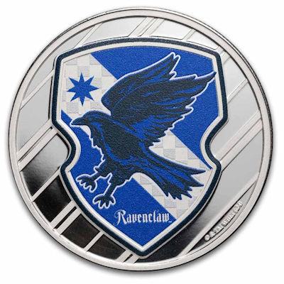 hogwarts-haeuser-ravenclaw-1-oz-silber-koloriertEin Name kann täuschen: Obwohl Ravenclaw übersetzt „Rabenklaue“ bedeutet, ist das Wappentier dieses Hogwarts-Hauses der Adler. Er steht für den überlegenen Intellekt, den die Gründerin Rowena Ravenclaw an ihren Schülern schätze. Als silbernes Sammlerstück macht das Hauswappen die Serie für Potter-Fans nach den Ausgaben Gryffindor, Slytherin und Hufflepuff komplett. Die Auflage ist auf 5.000 Exemplare limitiert.