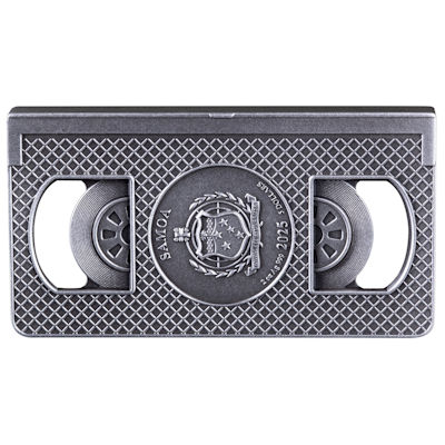 Die Silbermünze ist wie eine Videokassette gestaltet. Sie ist 27 mal 50 Millimeter groß. Angelehnt an das Filmposter ist die eine Seite mit einem „Aufkleber“ versehen, die andere zeigt das Siegel des Ausgabelands Samoa, einen Schild mit dem Sternbild Kreuz des Südens. Das Sammlerstück aus 2 oz Feinsilber hat einen Feingehalt von 999/1000. Die Verpackung erinnert an die Hülle eines VHS-Tapes. Hier sieht man noch einmal die versammelte Darsteller-Riege. Ein Echtheitszeritifikat gehört dazu.