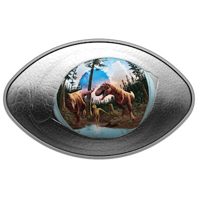 Im Fokus des Raubtiers: Silbermünze Dinosaurier-Auge