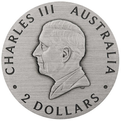 Das Motiv der Silbermünze ist zum Teil koloriert. Im Vordergrund sammeln zwei Bienen Pollen an einer violetten Blüte. Der silberne Hintergrund zeigt den Bienenstock. Das Antik-Finish verleiht dem Sammlerstück eine schöne Patina. Die Silbermünze enthält 2 oz Feinsilber bei einem Feingehalt von 99,99 Prozent. Sie hat einen Durchmesser von 40,69 Millimetern und ist in der höchsten Prägequalität Polierte Platte hergestellt. Der Münzrand ist glatt. Auf der Wertseite findet man den Nennwert von 2 Dollars und das Porträt von König Charles III. Ausgabeland ist Australien. Ausgeliefert werden die Sammlerstücke im Etui und einer passenden Umverpackung. Ein Echtheitszertifikat gehört dazu.