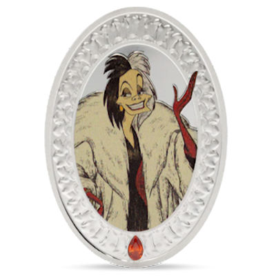 Die Silbermünze ist wie ein Porträt der schurkischen Diva gestaltet: Von einem silbernen Rahmen umgeben zeigt sie ein koloriertes Bild von Cruella De Vil. Unten ist ein roter Schmuckstein eingesetzt. Das Sammlerstück enthält 1 oz Feinsilber bei einem Feingehalt von 999/1000. Es ist 54,0 mal 37,0 Millimeter groß und in höchster Proof-Qualität geprägt. Der Münzrand ist geriffelt. Die Wertseite zeigt das Siegel des Ausgabelands Niue und den Nennwert von zwei Dollars. Oben ist das eingangs erwähnte Zitat zu finden, unten die Seriennummer. Die Silbermünze mit nummeriertem Echtheitszertifikat wird in einem Etui ausgeliefert, das wie ein Märchenbuch gestaltet ist. Darin ist ein weiterer O-Ton aus dem Film zu lesen: „Well, now, what have we here? So they thought, they could outwit Cruella?“