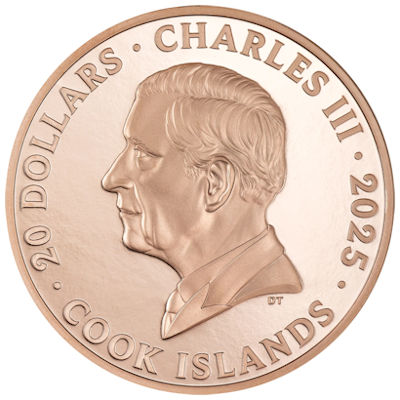 Das Sammlerstück enthält 3 oz Feinsilber bei einem Feingehalt von 999,9/1000. Der Durchmesser liegt bei 45,0 Millimetern. Die Wertseite zeigt das Porträt von König Charles III., dem offiziellen Staatsoberhaupt des Ausgabelands Cook Islands. Ein Nennwert von 20 Dollars ist randläufig angegeben. Verpackt ist das vergoldete Sammlerstück in ein Präsentationsetui: Hier ist die Silbermünze in das Bild einer Wüstenlandschaft eingebettet. Ein Echtheitszertifikat gibt es auch noch dazu.