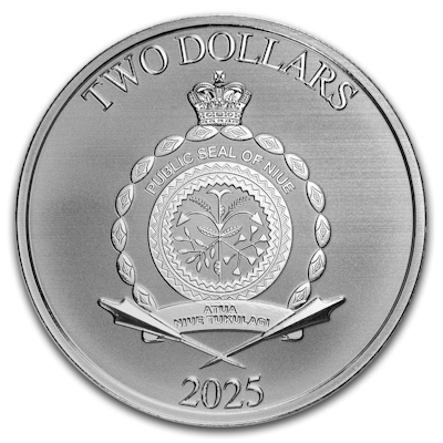 Die Silbermünze zeigt eine typische Szene: Dagobert Duck springt in sein Talerbad. Die Anlagemünze aus 1 oz Feinsilber hat einen Durchmesser von 40,0 Millimetern und einen geriffelten Rand. Der Feingehalt liegt bei 999/1000. Umseitig ist das offizielle Siegel des Ausgabelands Niue zu sehen. Der Nennwert ist mit zwei Dollars angegeben. Die in Stempelglanz-Qualität geprägten Silbermünzen haben eine Auflage von 25.000 Exemplaren.