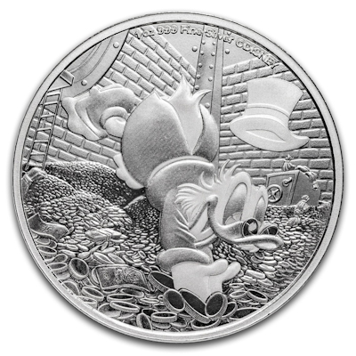 Er ist die reichste Ente der Welt, badet regelmäßig in Talern und liebt es, sein Geld zu zählen: Dagobert Duck ist eine der bekanntesten Figuren aus Entenhausen. 1947 hatte er seinen ersten Auftritt in einer Weihnachtsgeschichte. Diese Tatsache spiegelt sich in seinem originalen Namen wider: Scrooge McDuck ist nach dem wohl berühmtesten Geizhals der englischen Literaturgeschichte benannt: Ebenezer Scrooge aus „A Christmas Carol“ von Charles Dickens. Jetzt ist der reiche Erpel auch auf einer Silbermünze zu haben.