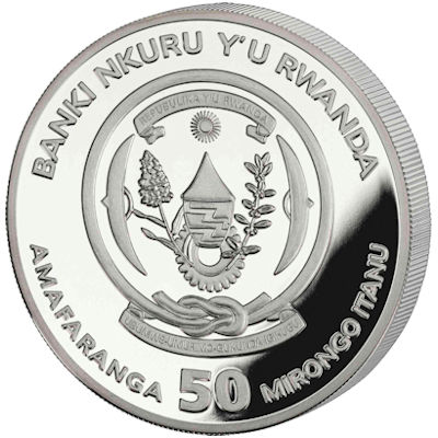Ihren Namen verdanken die Tiere dem gefleckten Fell, das auch auf dem Motiv der Silbermünze zu erkennen ist. Sie zeigt eine liegende und eine stehende Hyäne sowie ein Jungtier, während dahinter der Umriss des afrikanischen Kontinents abgebildet ist. Die Silbermünze hat einen Durchmesser von 40,0 Millimetern und eine geriffelten Rand. Sie enthält 1 oz Feinsilber bei einem Feingehalt von 999/1000. Die Wertseite zeigt das Wappen des Ausgabelands Ruanda über dem Nennwert von 50 Ruanda-Francs. Die Ausgabe in der Prägequalität Polierte Platte wird gekapselt und mit Echtheitszertifikat ausgegeben.