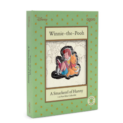 Wer den Titel „A Smackerel of Hunny“ nicht gleich versteht, hat seine Englisch-Vokabeln nicht vergessen: Es handelt sich um ein Kunstwort, das aus smack (Schmatzer, Kuss) und mackerel (Makrele) zusammengesetzt ist. Im Videospiel Super Mario Bros. wurde es aufgegriffen und für fischartige Gegner verwendet. Bei Winnie Puuh ist damit einfach ein großzügiger Happen gemeint. Seit 1926 sind die Geschichten von Alan Alex Alexander Milne in Umlauf. In den 1960ern machte Disney aus dem Kinderbuch-Klassiker die bekannten Zeichentrickgeschichten. An deren Stil orientiert sich die Gestaltung der Silbermünzen.