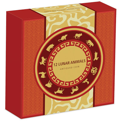Mit dem Jahr des Schweins 2019 ist wieder ein Lunar-Zyklus komplett. Vor dem Neustart mit dem Jahr der Ratte 2020 hat die australische Perth Mint für die Münzsammler ein besonderes Sammlerstück mit allen zwölf Lunar-Tieren im Programm. Die Silbermünze aus fünf Unzen Feinsilber beitet jede Menge Platz für ein detailreiches Motiv, ist in High Relief geprägt und mit einem Antik-Finish veredelt. Die Auflage ist streng limitiert auf nur 388 Stück.