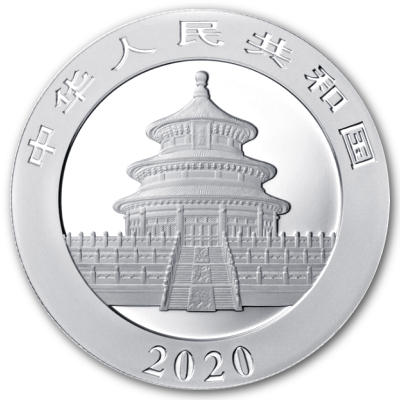 Der Nennwert von 10 Yuan ist ebenfalls auf dieser Seite zu finden. Umseitig zeigt die in Stempelglanz-Qualität geprägte Silbermünze einen Teil des Himmelstempels in Peking, darunter die Jahreszahl. Der Durchmesser liegt bei 40 Millimetern. Die Silbermünze aus 30 g Feinsilber hat einen Feingehalt von 999/1000. Beide Angaben sind auf der Wertseite zu finden. Der Münzrand ist geriffelt. Den China Panda gibt es auch als Goldmünze sowie in verschiedenen Sammlereditionen.