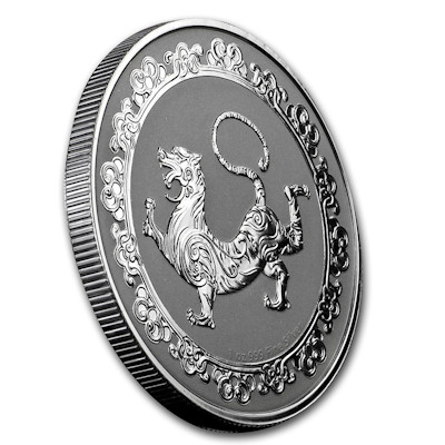 celestial-animals-white-tiger-1-oz-silber-3Bei weißen Tigern denken einige wahrscheinlich als erstes an Siegfried und Roy in Las Vegas. Aber wer sich mit der Harmonielehre Feng Shui beschäftigt, weiß, dass er es hier mit einem der fünf „himmlischen Tiere“ zu tun hat, die die Elemente repräsentieren. Ihnen hat die New Zealand Mint eine Serie von Silbermünzen gewidmet. Der Tiger ist auf der zweiten Ausgabe abgebildet. Die Auflage ist auf 10.000 Exemplare limitiert.