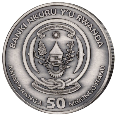 ruanda-mayflower-2020-1-oz-silber-high-relief-antik-wertseiteDie Silbermünze zeigt das Schiff als stolzen Dreimaster, der mit geblähten Segeln durchs Wasser pflügt. Durch die High-Relief-Prägung wirkt dieses Bild besonders eindrucksvoll. Außerdem verleiht das Antik-Finish dem Sammlerstück die Patina, die zu zu der 400 Jahre alten Geschichte passt. In den Wellen findet man den Namen Mayflower. Oben sind nautische Geräte abgebildet, links eine Kompassrose. Auch die Jahreszahl 2020 und die Angaben zum Feingewicht von 1 oz sowie dem Feingehalt von 999/1000 findet man auf dieser Seite. Die Silbermünze, die einen Durchmesser von 40 Millimetern hat, zeigt auf der Wertseite das Wappen von Ruanda. Unten ist der Nennwert von 50 Amafaranga (Ruanda-Francs) angegeben. Der Münzrand ist geriffelt. Ausgegeben wird das Sammlerstück gekapselt und mit Echtheitszertifikat.