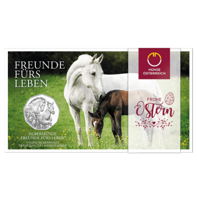 oesterreich-freunde-fuers-leben-silberNicht nur kleine Mädchen lieben sie, viele Menschen lassen sich von der Kraft und Schönheit der Pferde beeindrucken. Fast 350.000 Besucher zieht es zum Beispiel jährlich zur Spanischen Hofreitschule in Wien, wo die weltberühmten Lipizzaner ihre Künste zeigen. Gezüchtet werden sie im Gestüt Piber, das 2020 seinen 100. Geburtstag feiert. Deshalb hat die Münze Österreich den Pferden dieses Jahr eine 5-Euro-Silbermünze gewidmet.