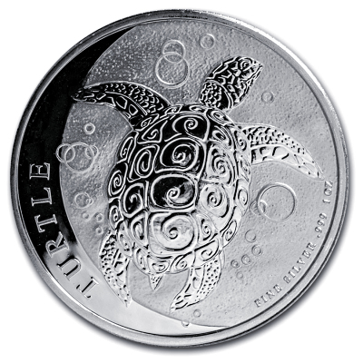 Zunächst war Fidschi das Ausgabeland der Silbermünze mit der Schildkröte. Inzwischen wird sie vom Inselstaat Niue ausgegeben. Auch dieser liegt mitten in der Heimat der Hawksbill-Schildkröte (Echte Karettschildkröte) im Südpazifik. Die Art ist trotz ihres großen Verbreitungsgebiets inzwischen vom Aussterben bedroht. Es schadet also sicher nicht, wenn die Silbermünze ein bisschen Aufmerksamkeit auf diese faszinierenden Tiere, die bis zu 90 Zentimeter lang werden können, lenkt. Auf dem Motiv ist die Schildkröte von oben zu sehen, wie sie über den Meeresbodern hinweg gleitet. Ringsum steigen Luftblasen auf. Stilisierte Muster schmücken den Panzer.
